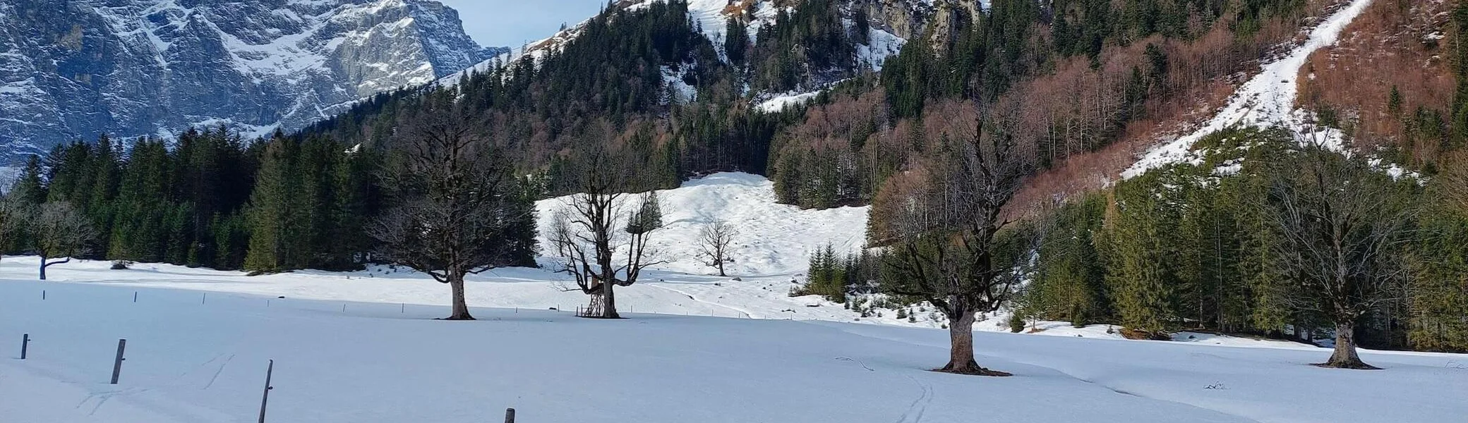 Auf gleicher Loipe ging es anschließend bei blauem Himmel und Sonne immerfort leicht abwärts zurück zum Ausgangspunkt – für die 13 km brauchten wir deshalb lediglich eine gute 3/4 Stunde. Uns kamen dabei noch unzählige Spätaufsteher entgegen, die wir dann nicht mehr gezählt haben. Bei Suppe, Hirschbraten und Kuchen im Hotel Post in Hinterriss waren wir uns einig, dass die Karwendelloipe bei diesen Bedingungen eine Empfehlung für klassische Langläufer verdient!